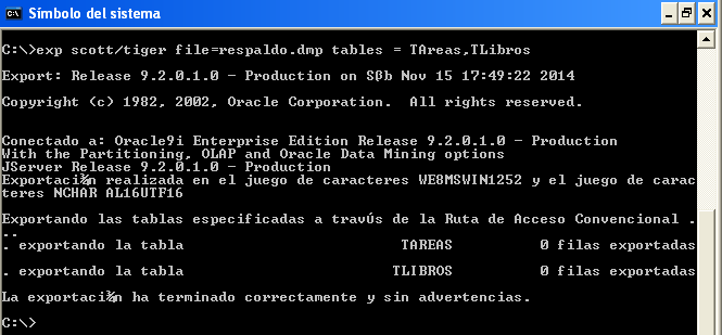 - Importando tablas en oracle usando imp